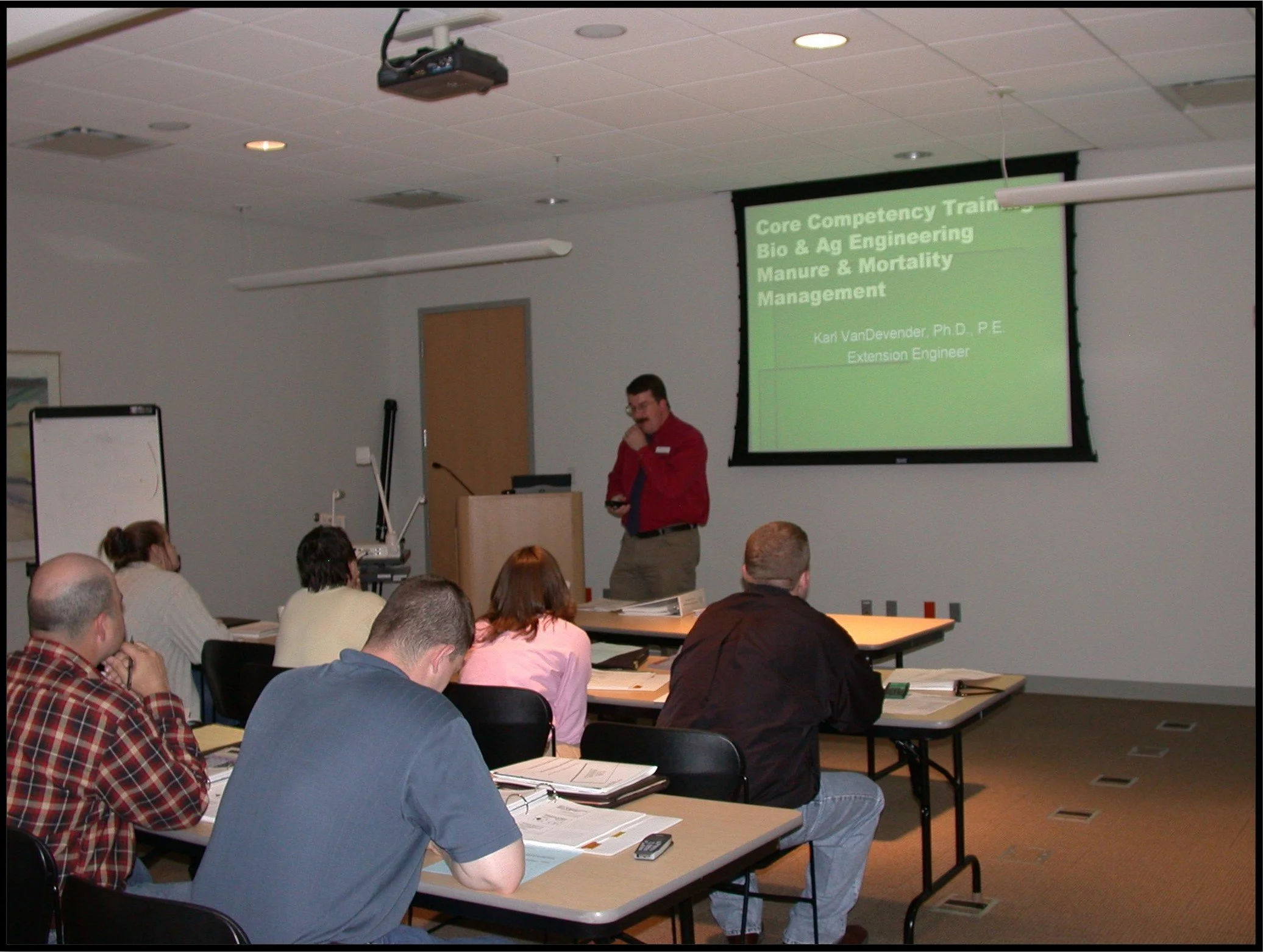 Karl VanDevender conducting an in-service training on manure and mortality management