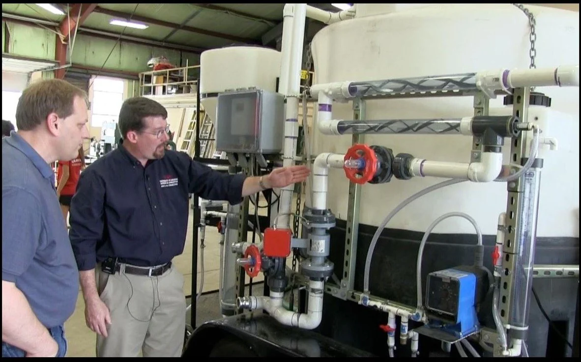 Karl VanDevender explaining the chemical metering/mixing on a Liquid Manure Separation Demonstration unit